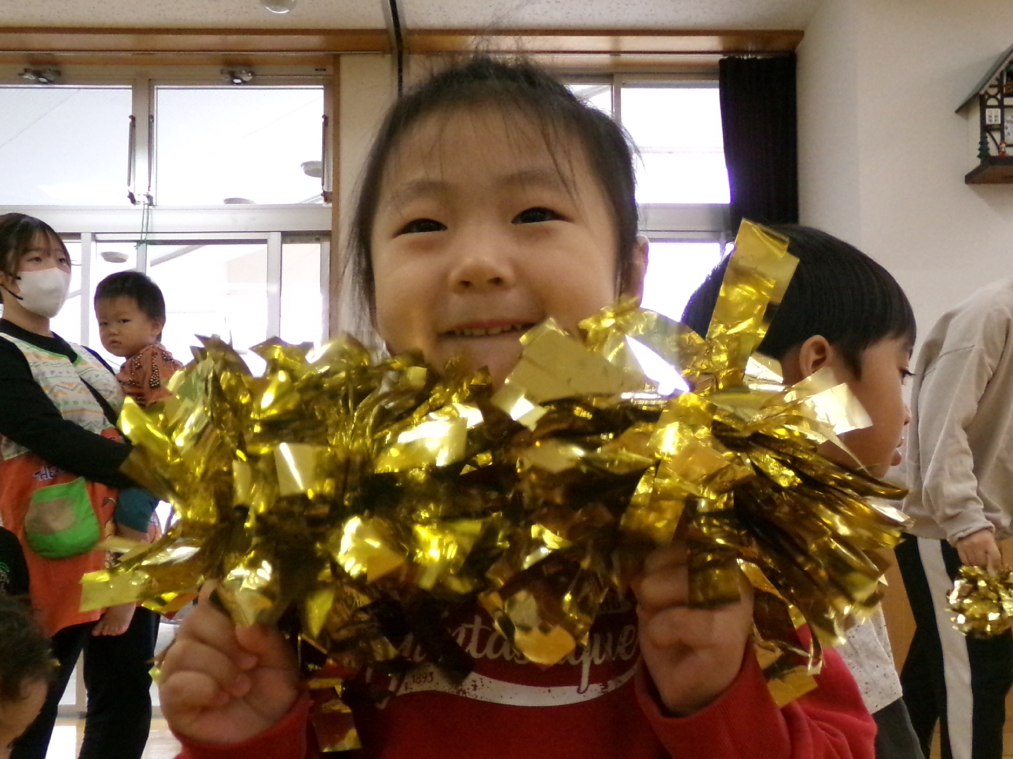 キラキラのポンポンを両手に持ち、お姉さんたちに教えてもらったダンスをチーバくんに見てもらい、とても嬉しそうでした~☆