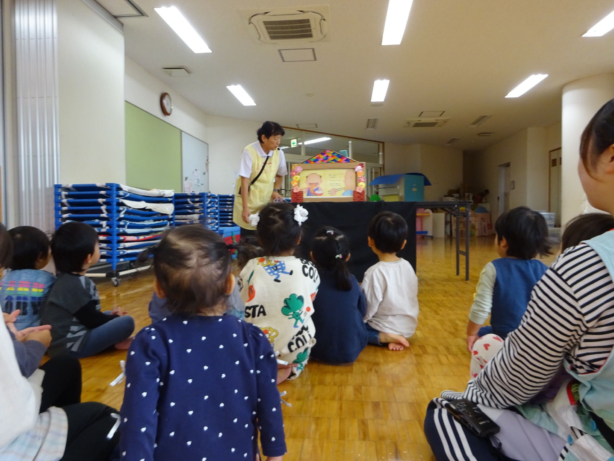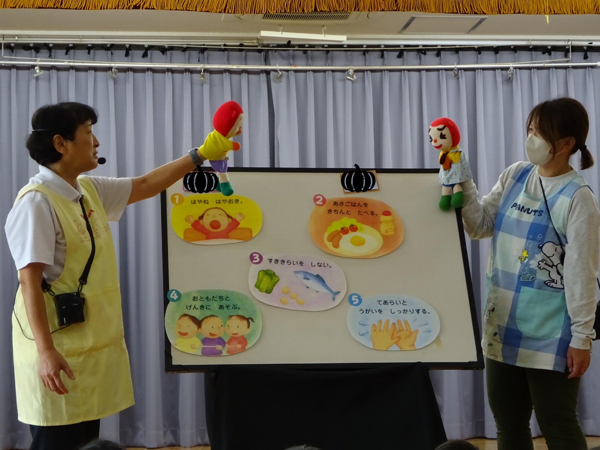 紙芝居やパネルシアターを通して、おなかが元気になる【5つの約束事】を教えてもらった子どもたち!